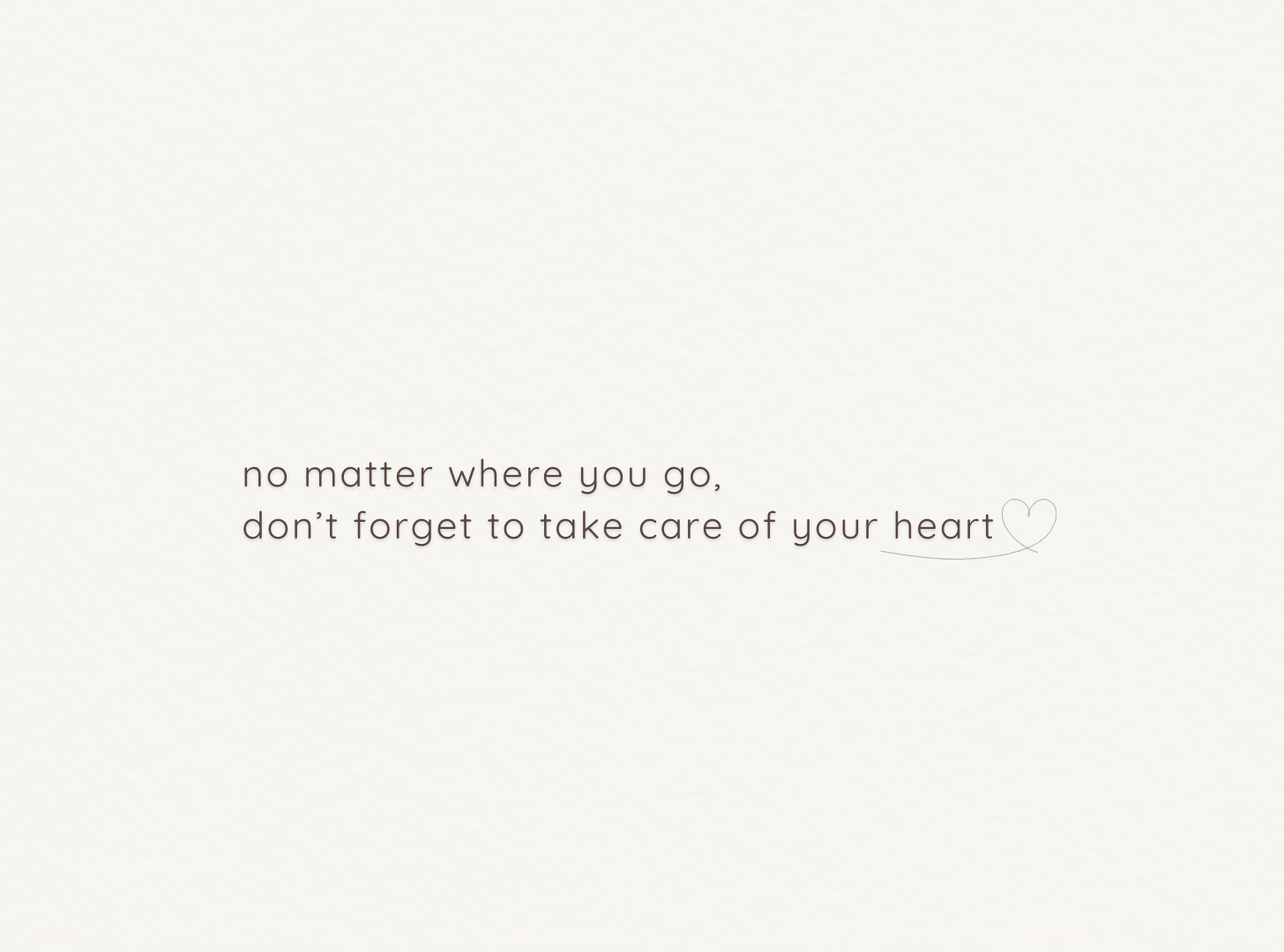“No matter where you go, don’t forget to take care of your heart.” This saying resonates deeply with me and encapsulates the message I’ve been emphasizing throughout the year. I came across this quote in a Taiwanese TV series titled “A Thousand Goodnights.”